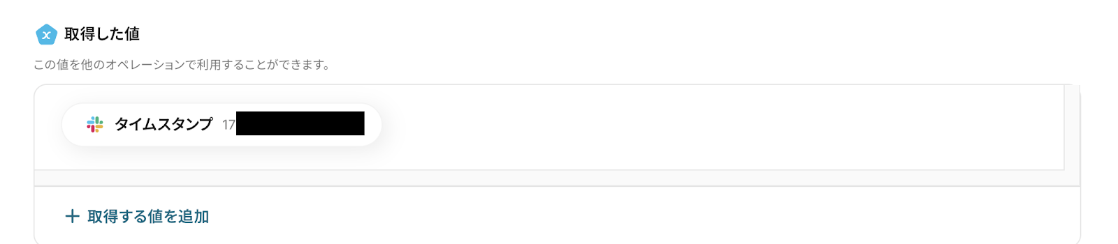 「テスト」をクリックして「取得した値」としてSlackのデータがアウトプットされていればOKです!