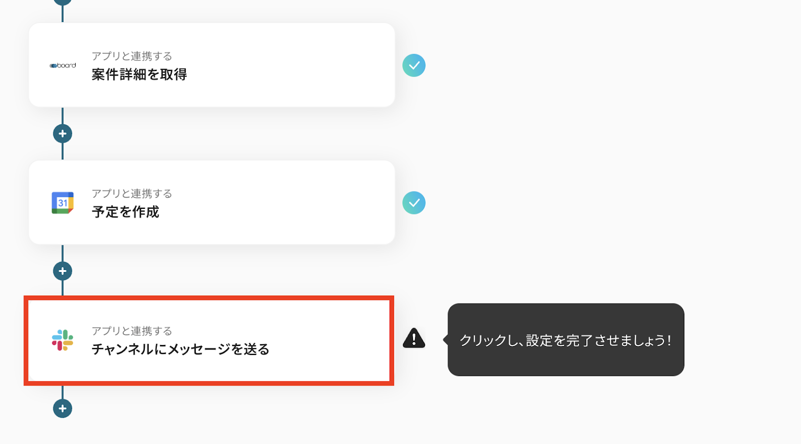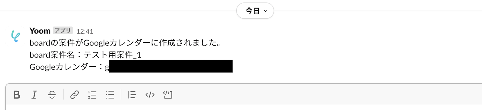 以上が、boardで新しい案件が登録されたら、Googleカレンダーに予定を作成してSlackで通知する連携手順になります。