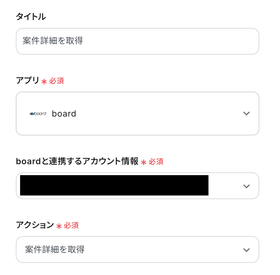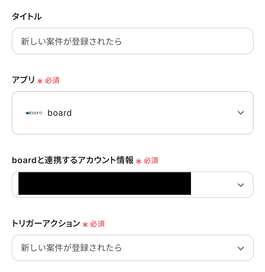 「boardと連携するアカウント情報」:ステップ1で連携したアカウントが表示されていることを確認します。
