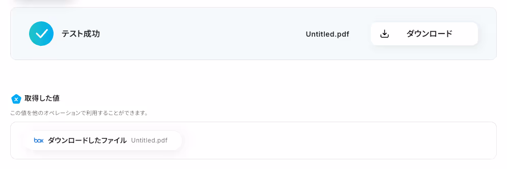 テストが成功すると、以下のように「取得した値」が表示されます。
