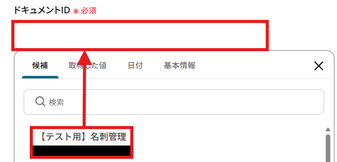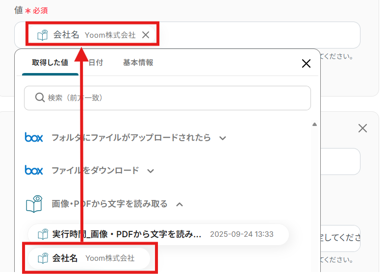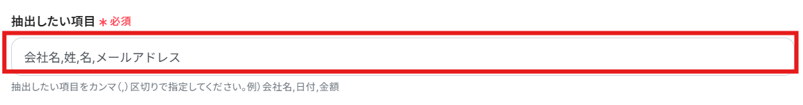 - AI機能のOCR設定では、ファイル内のどの情報を抽出するかを任意で設定してください。例えば、書類内の「日付」や「金額」など、特定の項目を指定できます