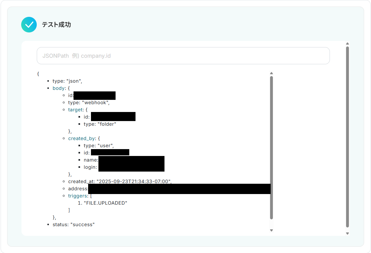ステップ3:Boxでフォルダにファイルがアップロードされたら