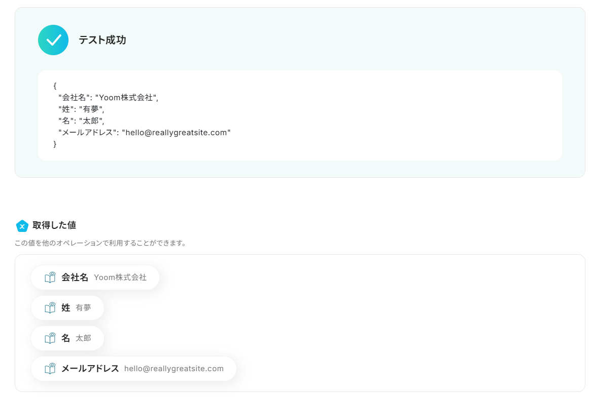 - Googleフォームをトリガーとして使用した際の回答内容を取得する方法はこちらをご参照ください。