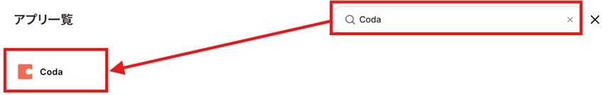 「新規接続」を選択すると「アプリ一覧」が表示されます。Codaを検索して選択しましょう。