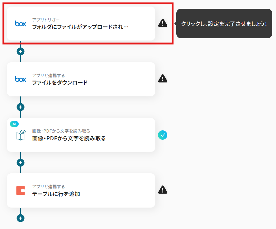 今回は「Boxにファイルが格納されたら、OCRで読み取りCodaに行を追加する」フローを作成していきます!