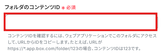 「フォルダのコンテンツID」を注釈に沿って手動で入力しましょう。