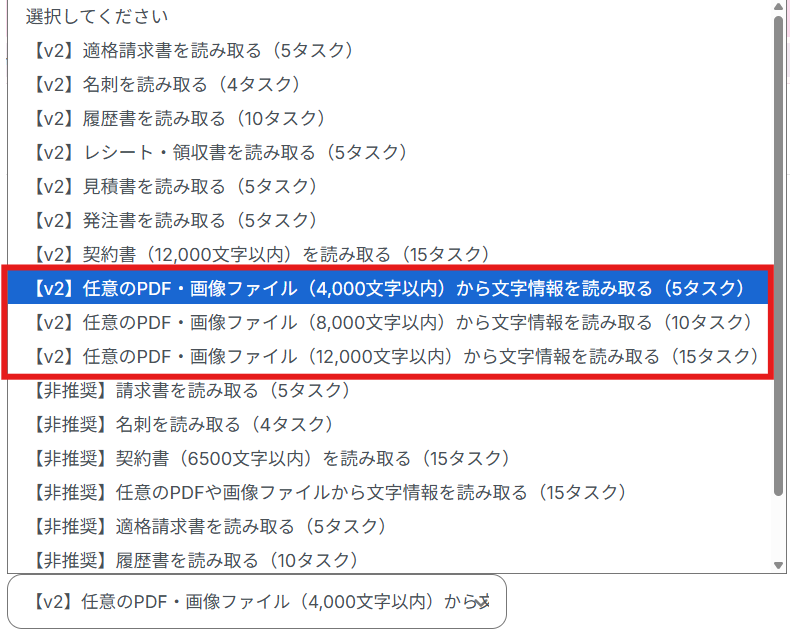 - OCRのオペレーションはチームプラン・サクセスプランでのみご利用いただける機能となっております。フリープラン・ミニプランの場合は設定しているフローボットのオペレーションはエラーとなりますので、ご注意ください。