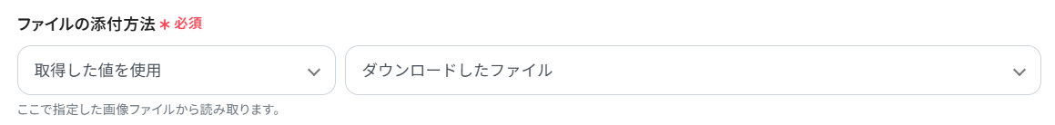 - 次に、AI機能の「画像・PDFから文字を読み取る」アクションを設定し、ダウンロードしたファイルからテキストデータを抽出します。