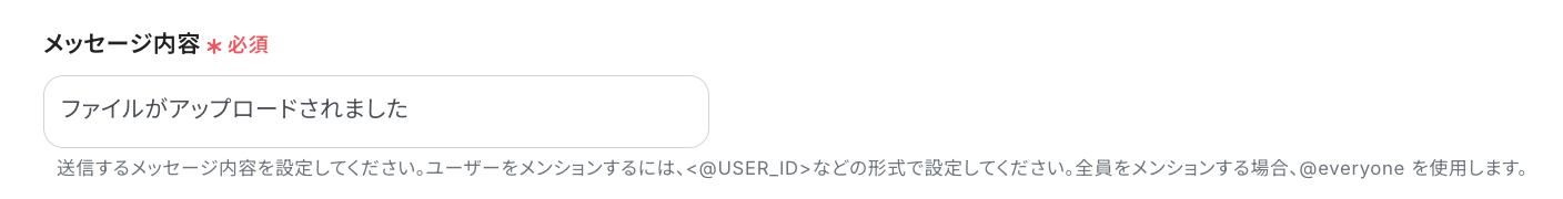例えば、ファイル名に「請求書」や「報告書」といったキーワードが含まれるファイルがアップロードされた時だけ通知を送ることで、不要な通知を減らし、重要な情報だけを確実にチームへ共有するのに役立つでしょう。
