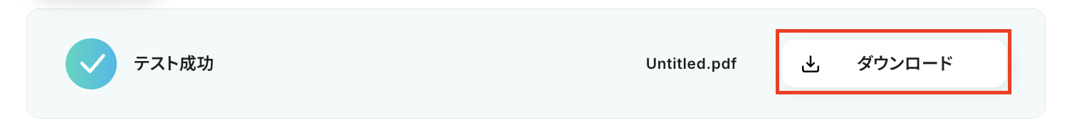 テストが成功すると下図のように「ダウンロード」ボタンが表示されるので、クリックしてステップ3でテスト用にアップしたファイルがダウンロードできていることを確認してみてくださいね!