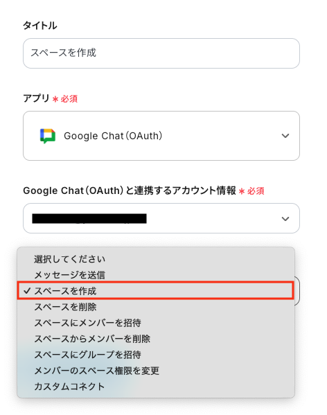 ステップ4:Google Chatのアクション設定