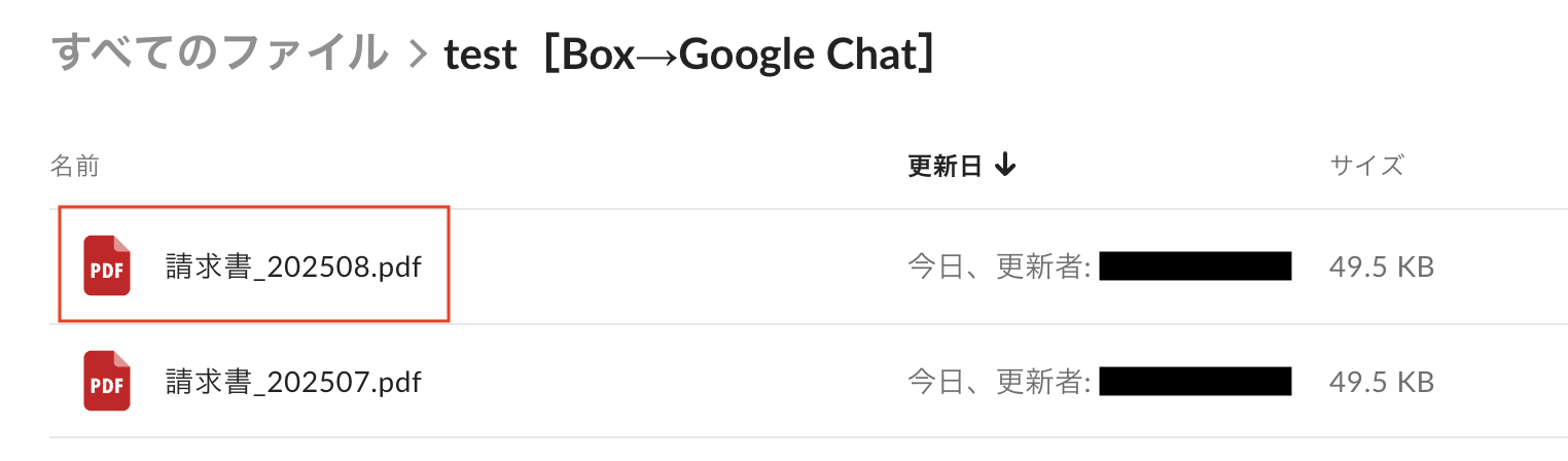 Boxに特定条件のファイルがアップロードされたら、Google Chatにスペースを作成する
