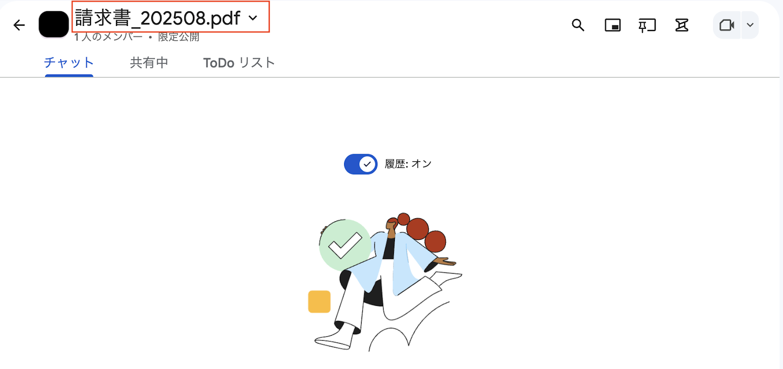 Boxでアップロードされたファイル名をスペースの表示名にすることで、承認者や関連部署のメンバーは、スペース名を見ただけで、どの請求書に関する議論かを一目で把握できます。