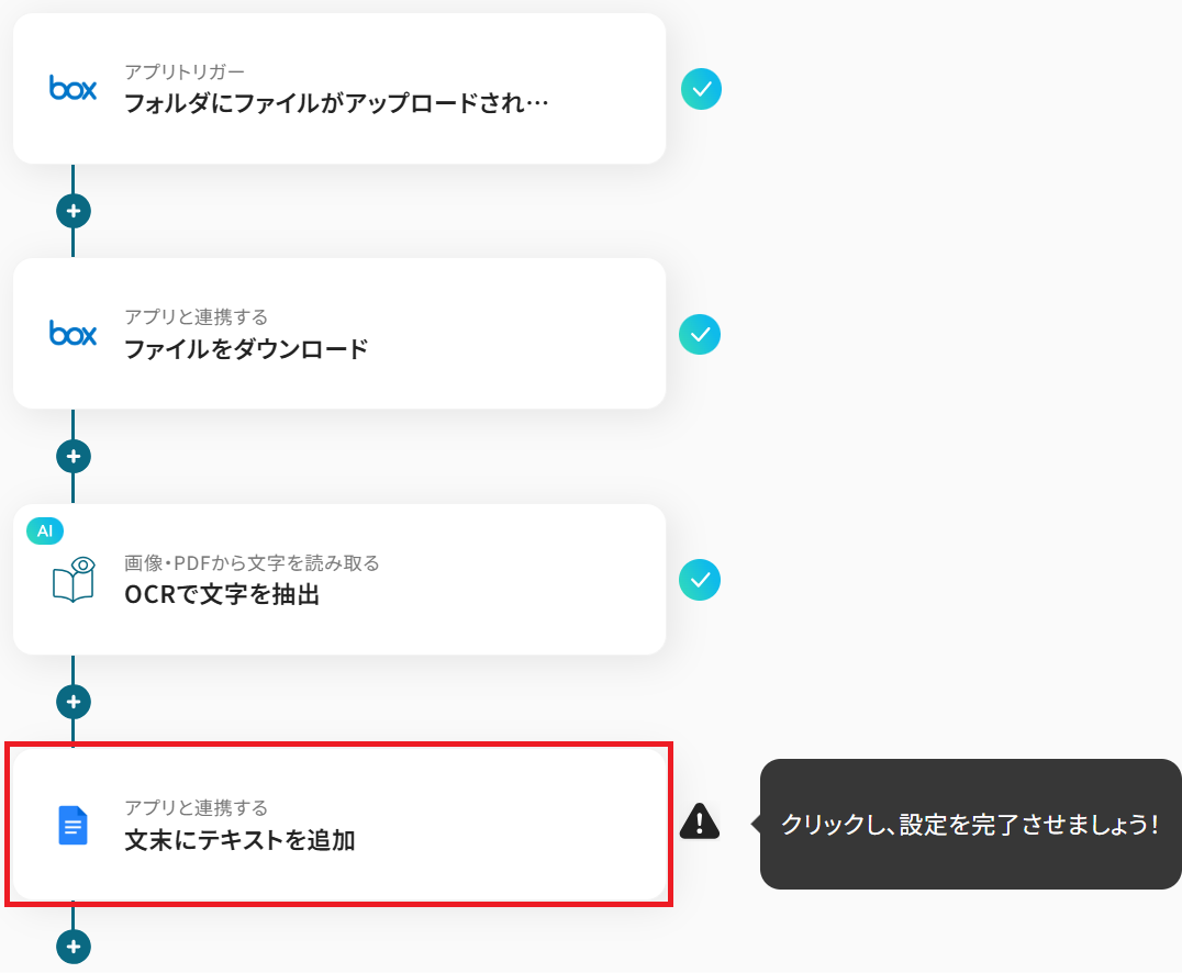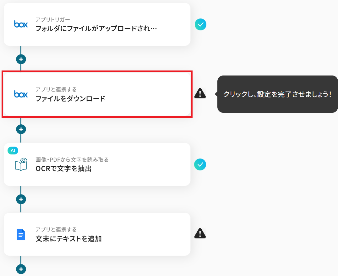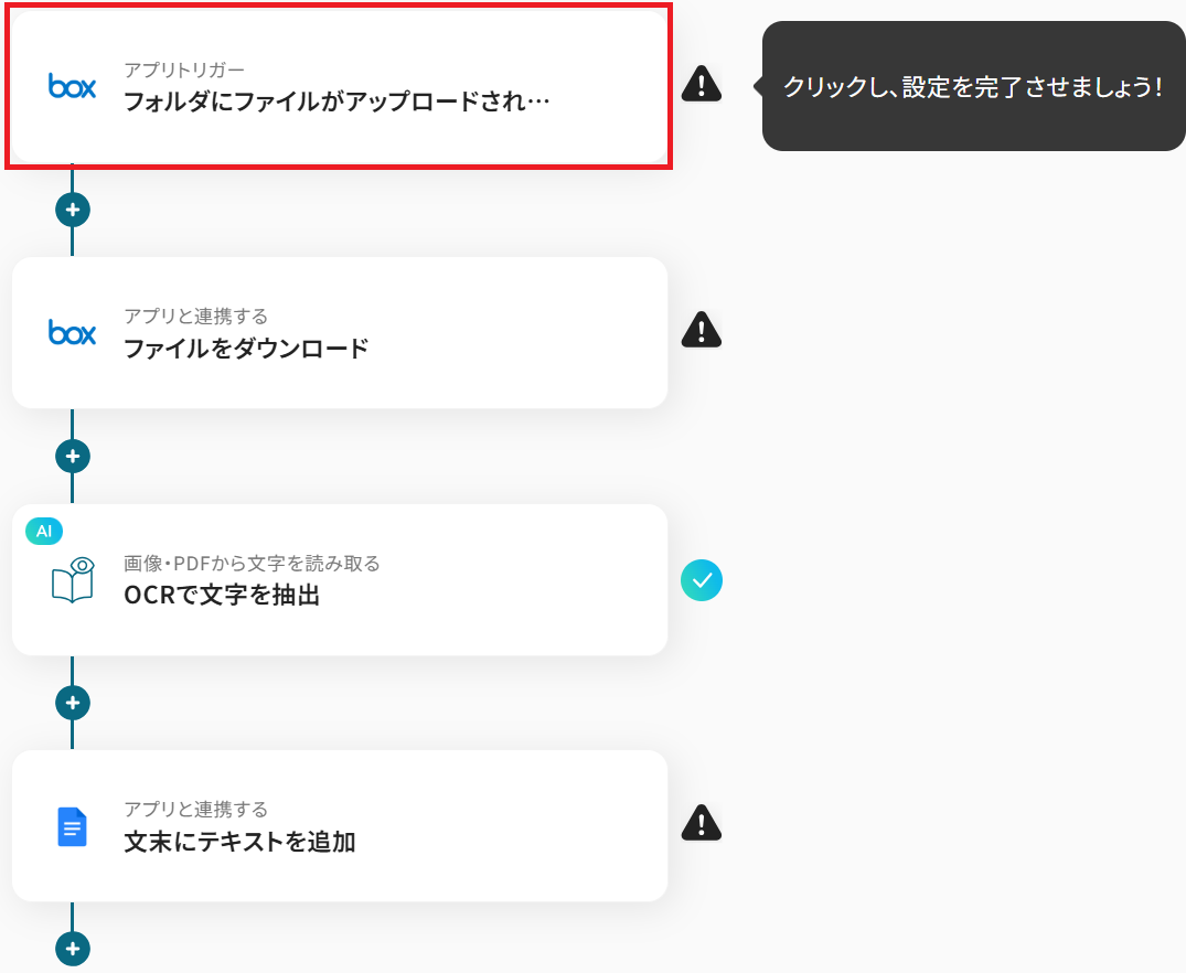 - Boxのトリガー設定およびアクション設定、OCR設定、Googleドキュメントのアクション設定