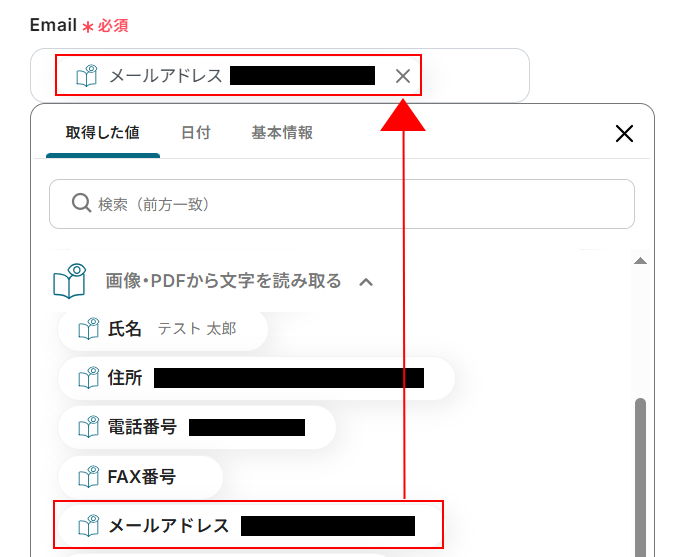 Emailを設定します。 デフォルトで設定されていますが、以下のように入力欄をクリックし取得した値から設定することも可能です。