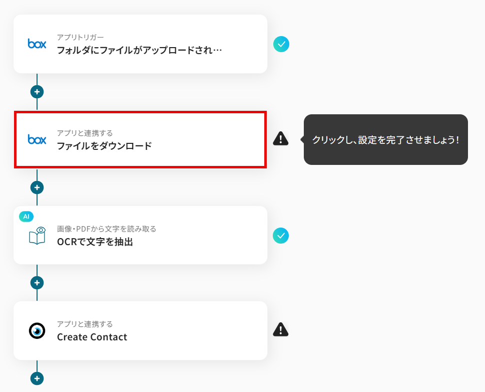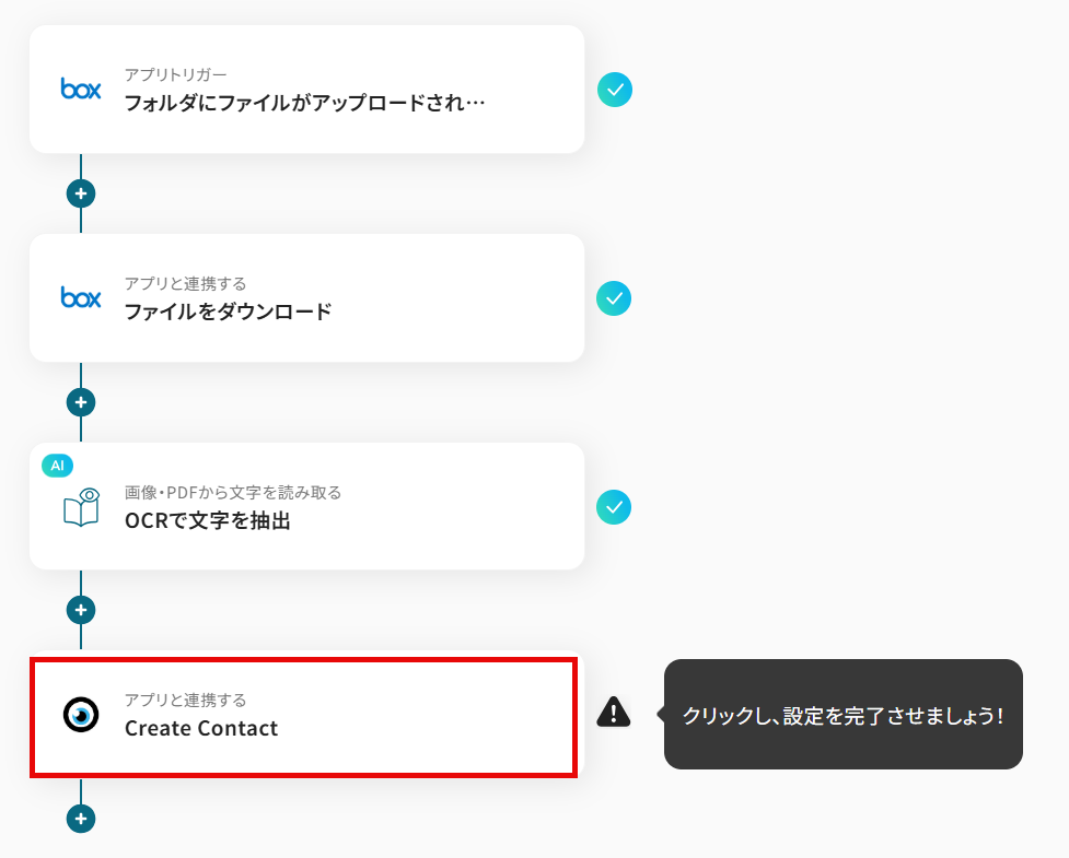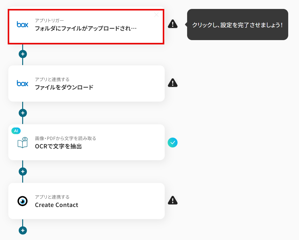 今回は「Boxにファイルがアップロードされたら、OCRしてMOCOでContactを作成する」フローを作成していきます!