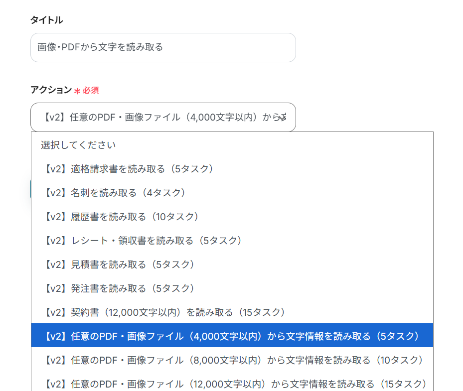 - OCR_AIオペレーションはチームプラン・サクセスプランでのみご利用いただける機能となっております。フリープラン・ミニプランの場合は設定しているフローボットのオペレーションはエラーとなりますので、ご注意ください。