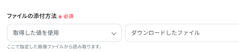 - Google Driveでファイルをダウンロードするオペレーションでは、トリガーで取得した情報(アウトプット)からファイルIDを動的に指定します。
