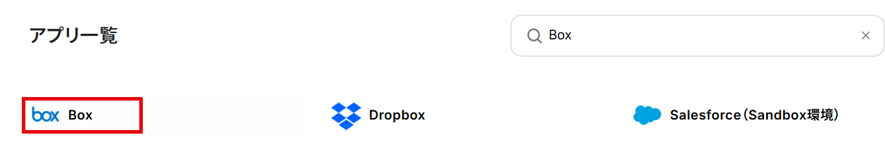 マイアプリから「新規接続」を押した後、Boxを検索し、クリックしてください。
