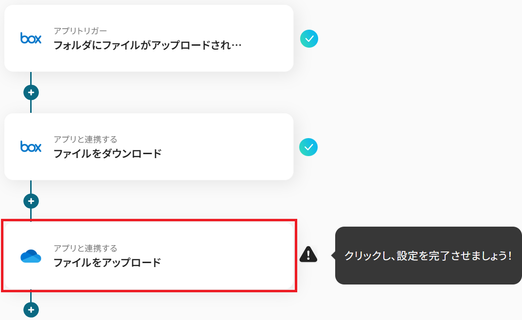 ・Boxにファイルを入れば、自動でOneDriveにもファイルがアップロードできるので、どちらのツールにもファイルをアップする手間を削減できます。