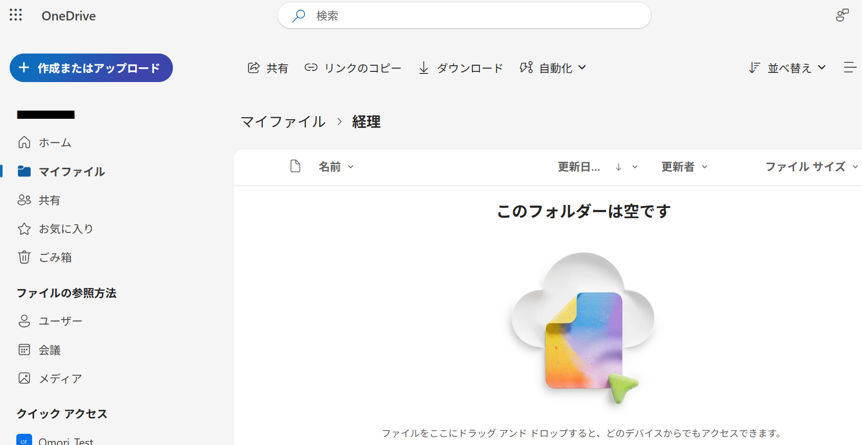 例としてBoxと同じく「経理」フォルダを作成しました。