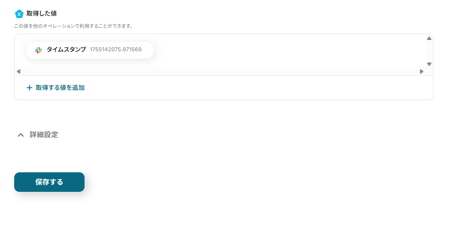 テスト・Slackへの投稿に問題ないことを確認したら保存するボタンをクリックし、Slackへのメッセージの送信設定を完了させてください。