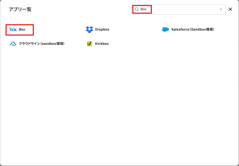 検索ボックスにBoxと入力し、Boxのアイコンをクリックします。