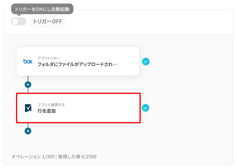 すべての行ではなく、例えば「ステータス」が「新規」になった行や、特定の担当者が割り当てられた行のみを対象にBoxフォルダを作成したい場合に、このテンプレートは非常に有効です。