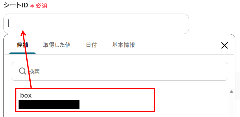 - シートID:入力欄をクリックし、候補から選択しましょう。