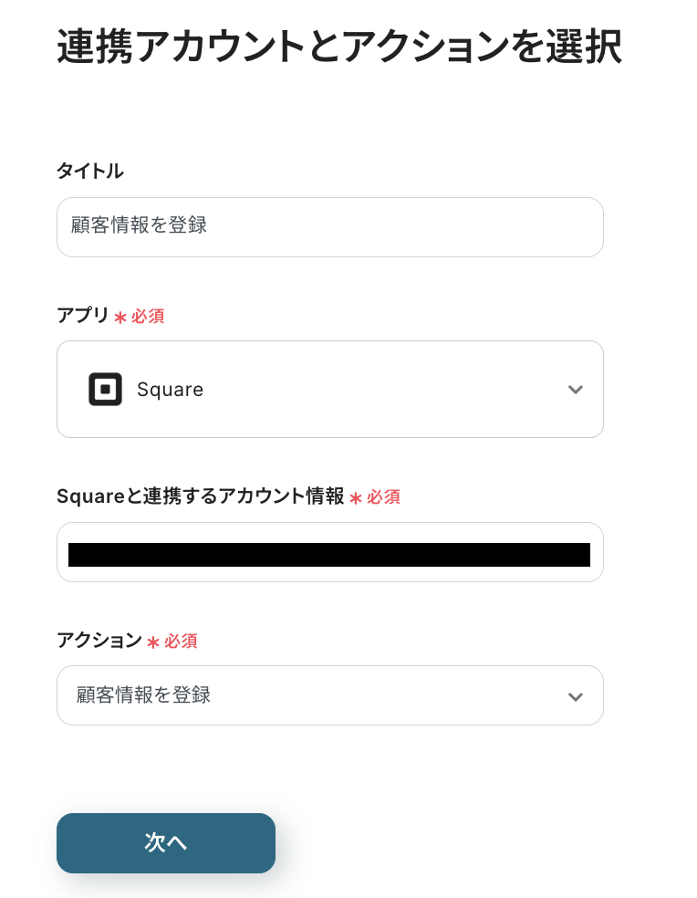 連携するアカウント情報は、フローで使用するアカウントであることを確認します。基本的には、ステップ1で入力した情報が反映されていますよ!