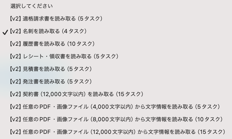 また、OCRのアクション設定時に選択する内容(名刺を読み取る等)によってタスクの消費数が異なります。