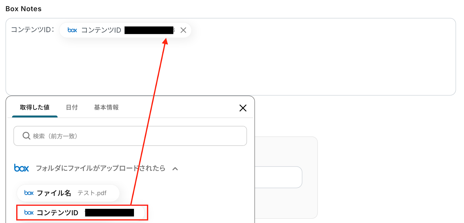 ここでは任意の文章やアウトプットを引用して設定しましょう。ここでは「コンテンツID」を設定しました。