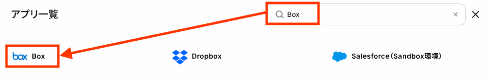 検索窓に「Box」と入力し、検索結果から該当アプリを選択します。