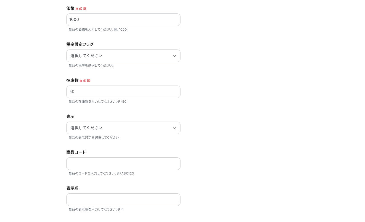 「税率設定フラグ」や「表示」はプルダウンから選択・設定してくださいね。