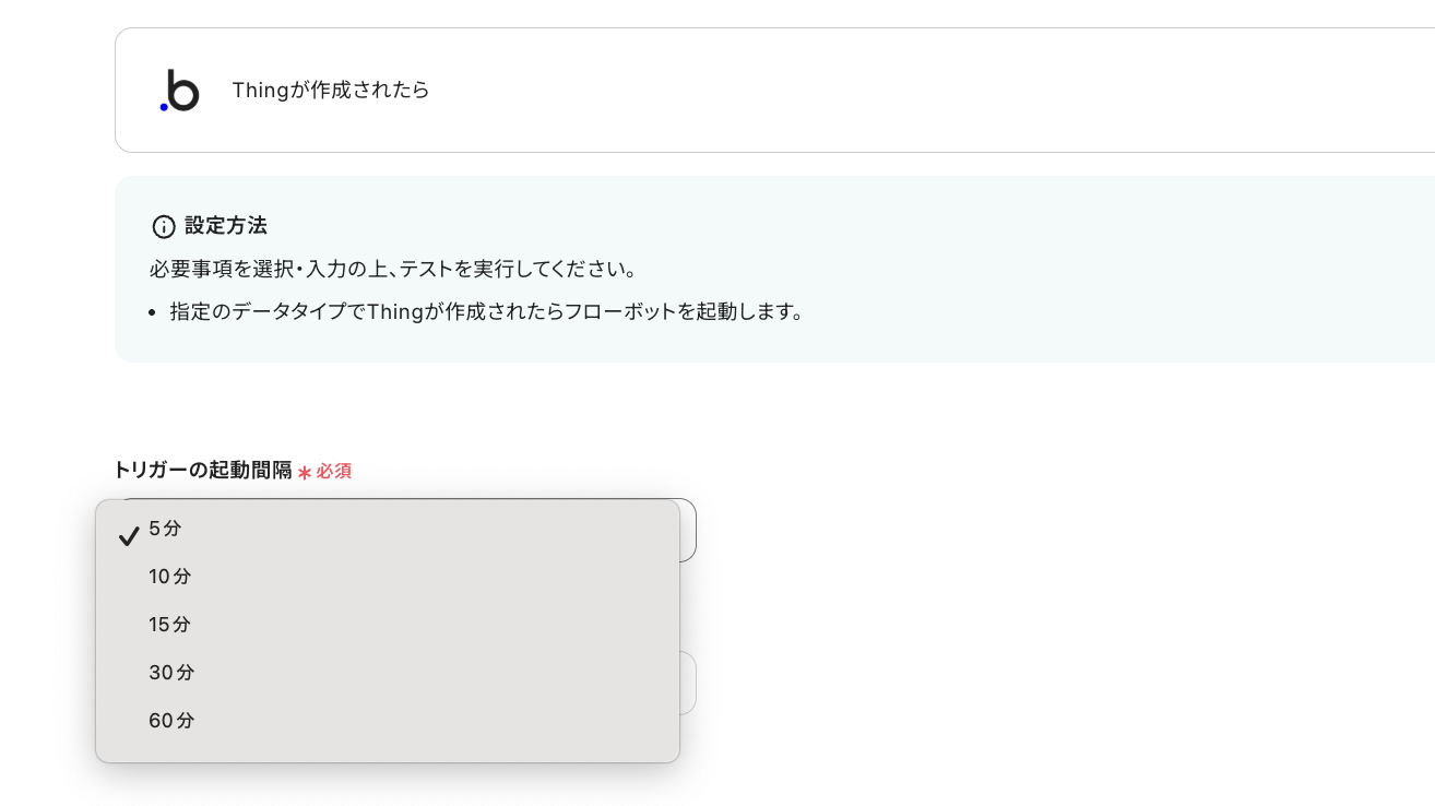・トリガーは5分、10分、15分、30分、60分の間隔で起動間隔を選択できます。