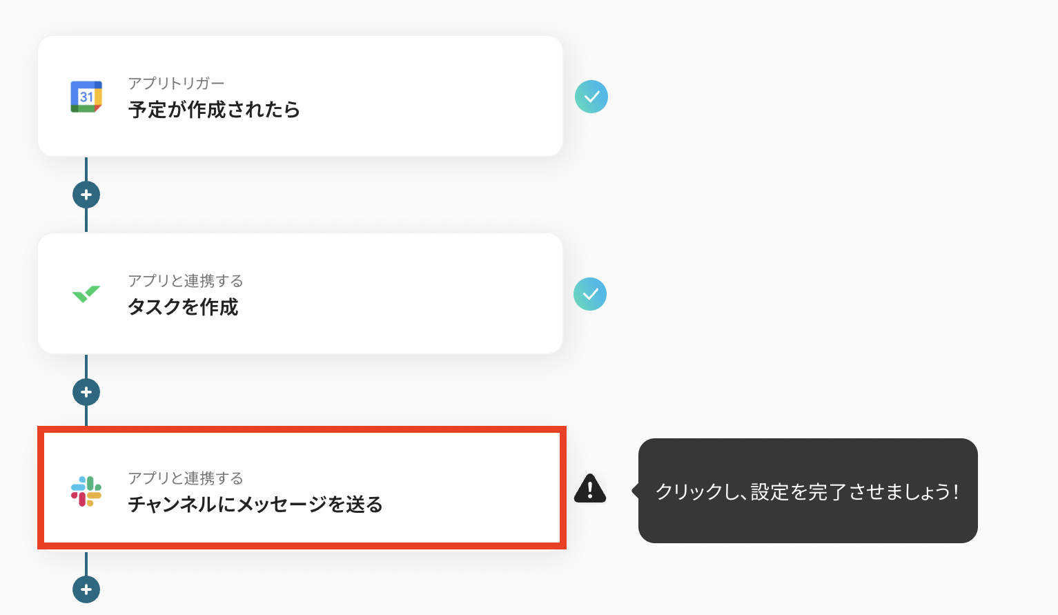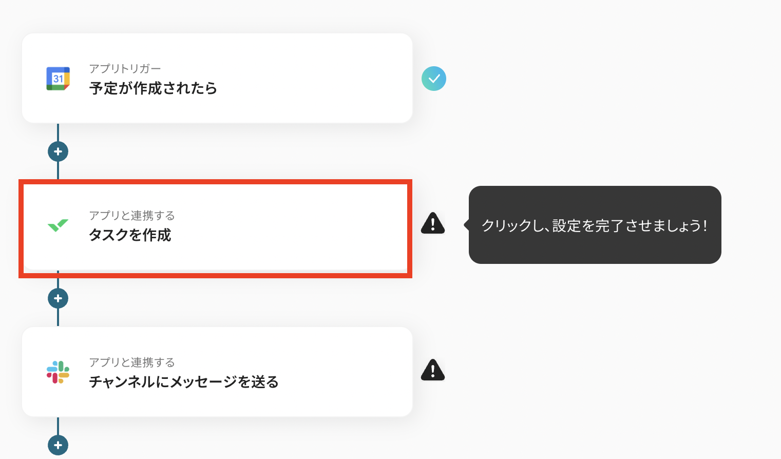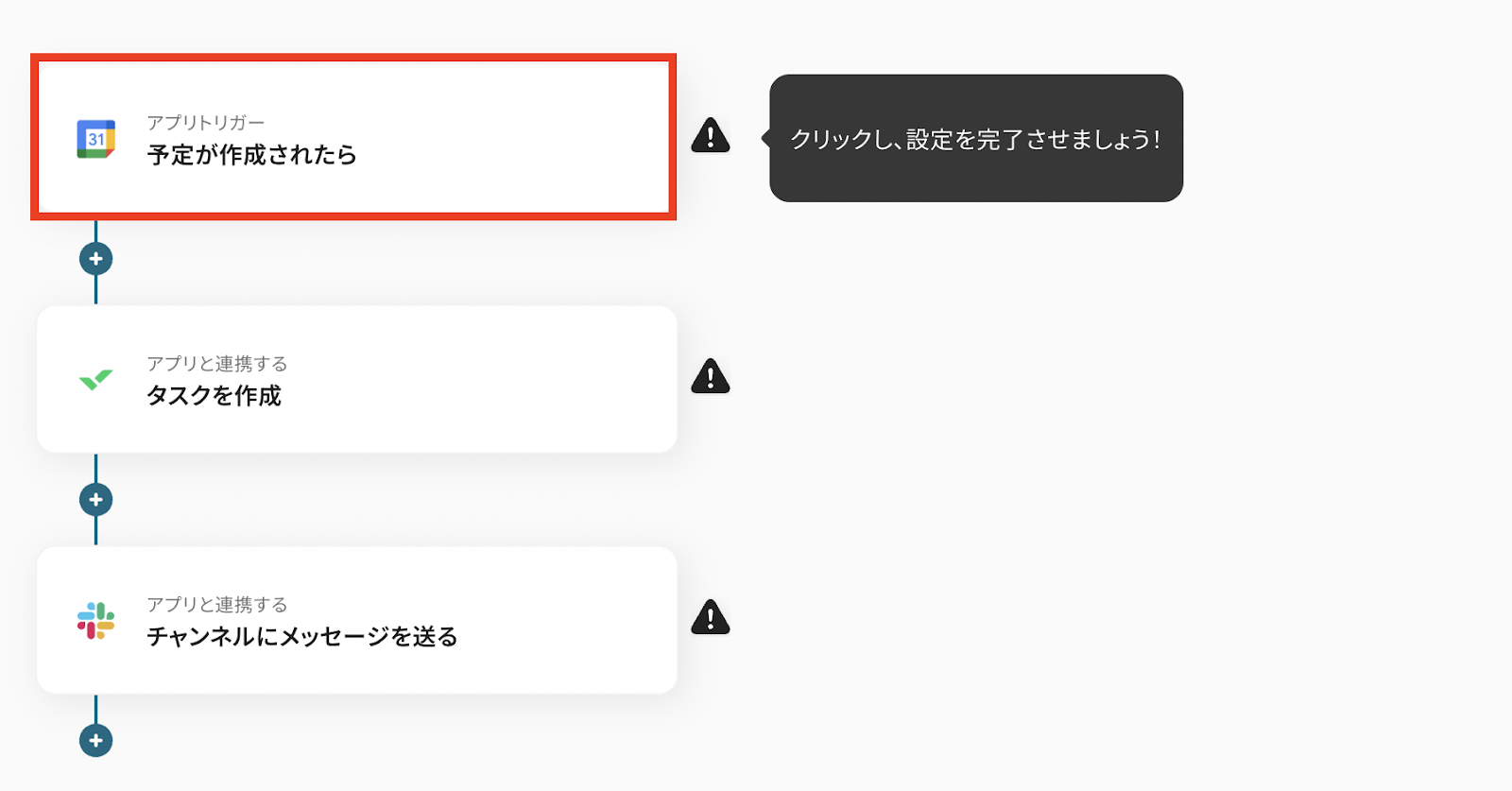 それではここから代表的な例として「Googleカレンダーに予定が作成された際に、Wrikeにタスクを自動で作成し、Slackで通知する」フローを解説していきます!