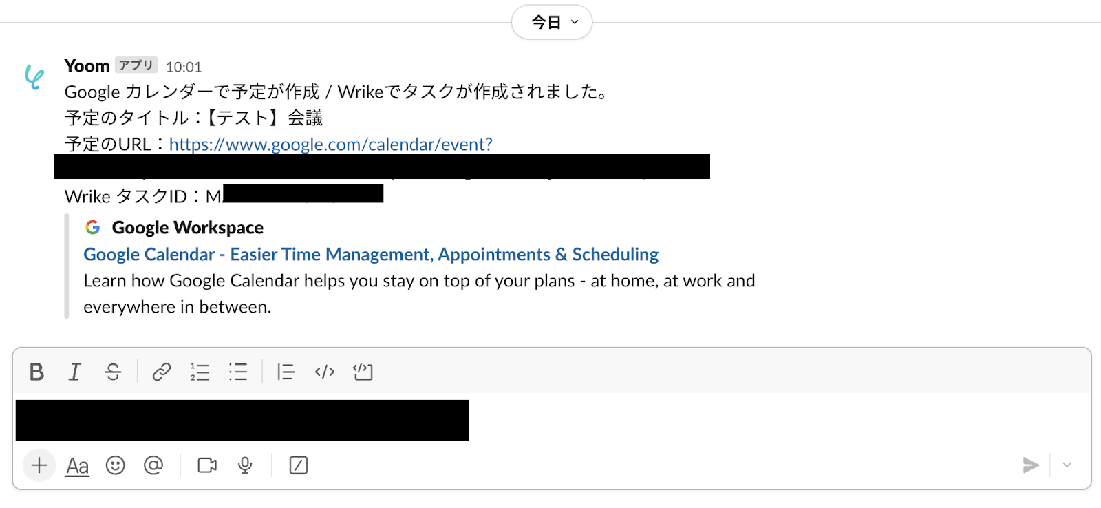 以上が、Googleカレンダーで予定が作成されたら、Wrikeでタスクを作成してSlackで通知する連携手順になります!