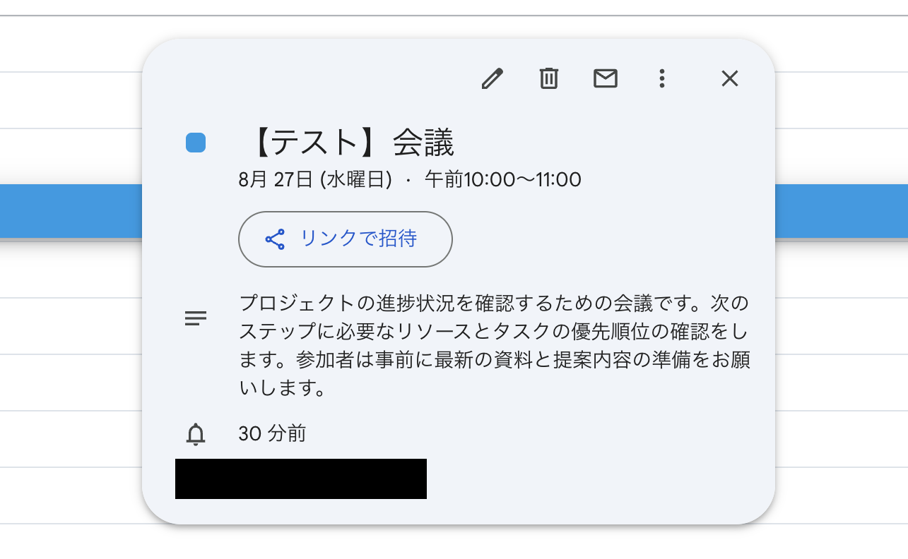 今回は「会議にもとづいたタスク作成と関係者への通知する」を想定して、画像のようなスケジュールを作成してみました!
