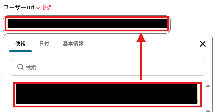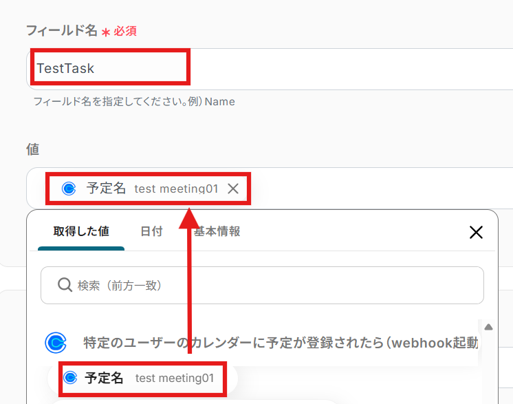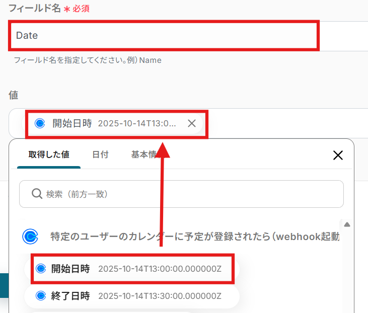 値は入力欄をクリックすると表示される、取得した値の中から選びましょう。