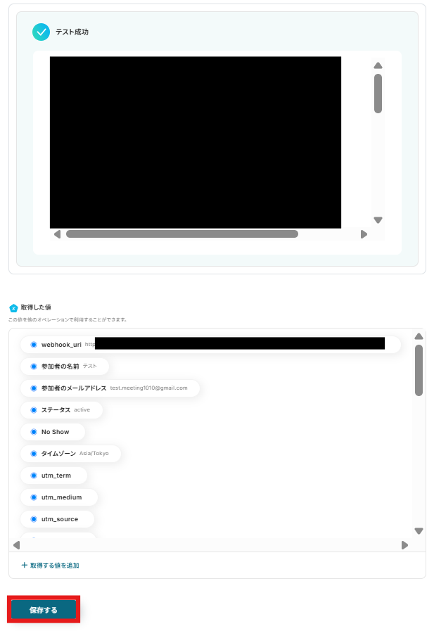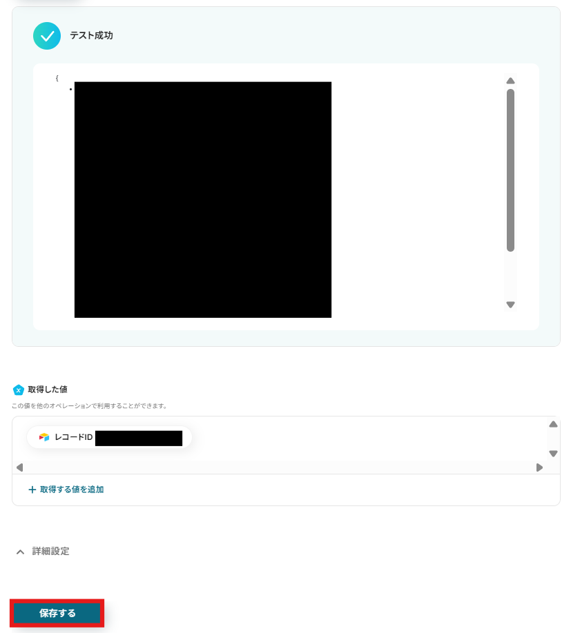確認できたら、Yoomの画面に戻り「保存する」をクリックします。