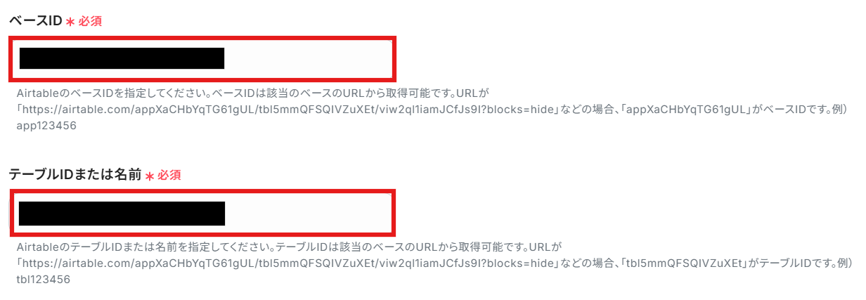 画面の案内に沿って、ベースIDとテーブルIDを入力します。