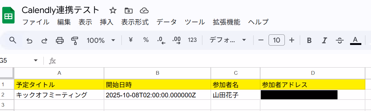 実際にフローボットを起動して、Calendlyで予定を登録したらGoogle スプレッドシートにレコードが追加されるか確認してみてくださいね!