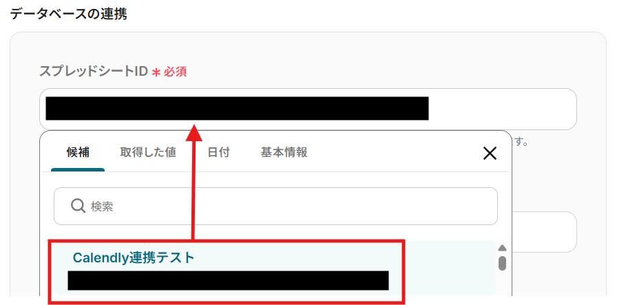 編集欄をクリックすると、Google スプレッドシートの候補が表示されるので、連携したいGoogle スプレッドシートを選んでください。