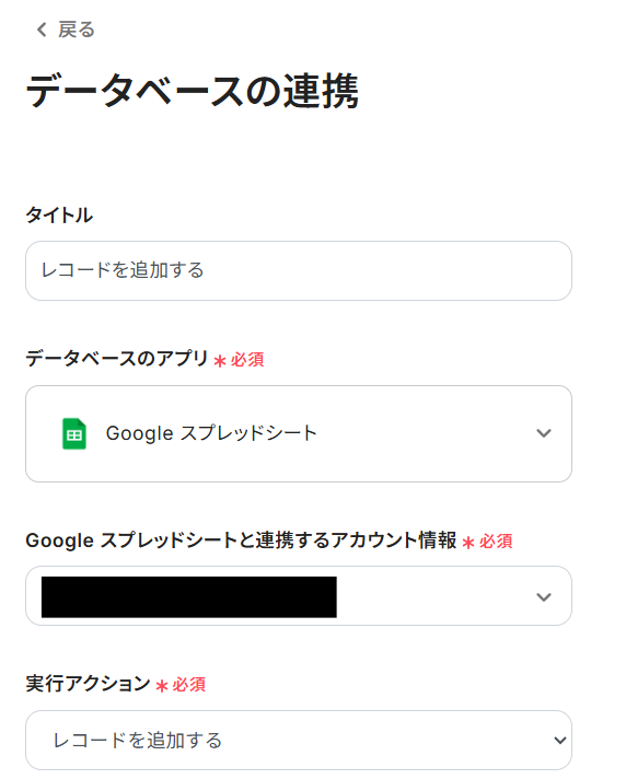 実行アクションは「レコードを追加する」のままで次に進みましょう!