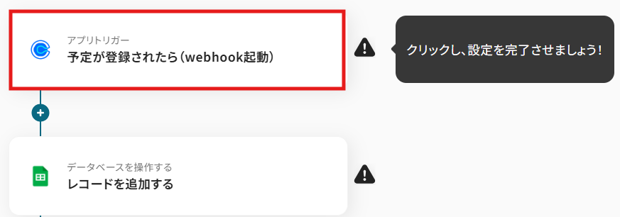 「予定が登録されたら(webhook起動)」をクリックします。