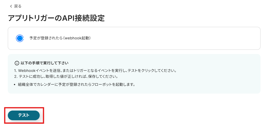 予定を登録したら、Yoomの操作画面に戻り、テストを実行します。