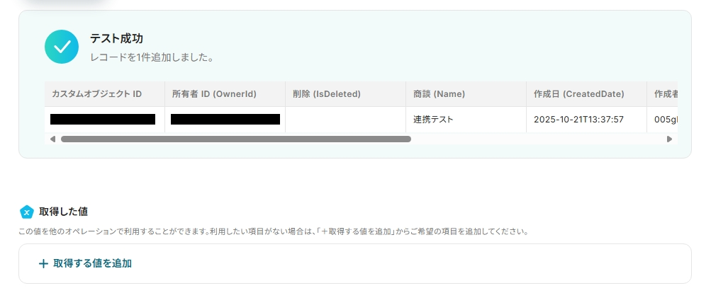 ・Salesforceはチームプラン・サクセスプランでのみご利用いただけるアプリとなっております。フリープラン・ミニプランの場合は設定しているフローボットのオペレーションやデータコネクトはエラーとなりますので、ご注意ください。