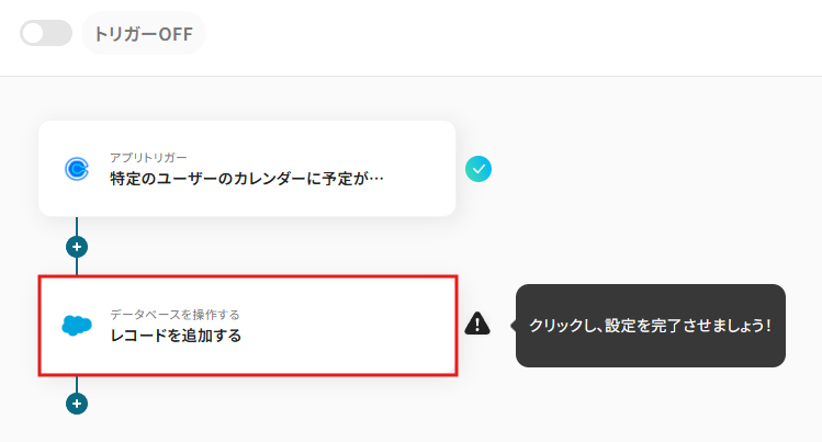 オペレーションの間に分岐ができるよう設計されており、「初回商談」や「製品デモ」といった特定のイベントタイプの予定のみをSalesforceのリードとして登録できます。