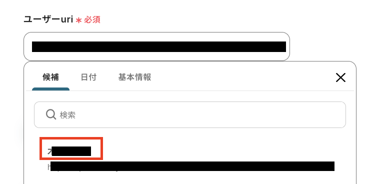 同様に、「ユーザーuri」も候補から選択しましょう。