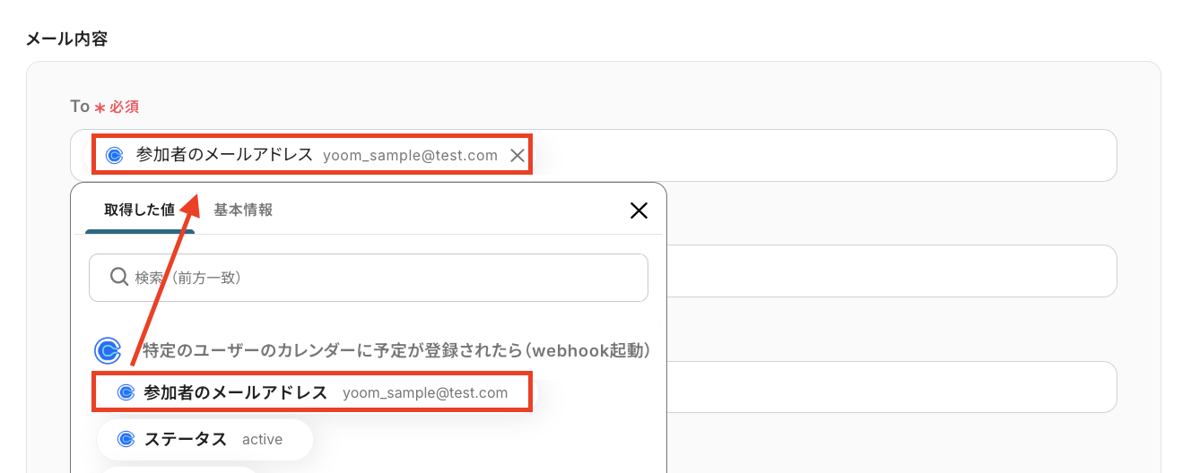 下図のように「取得した値」を使って設定することで、予定の参加者にメールを自動送信できるようになりますよ!
